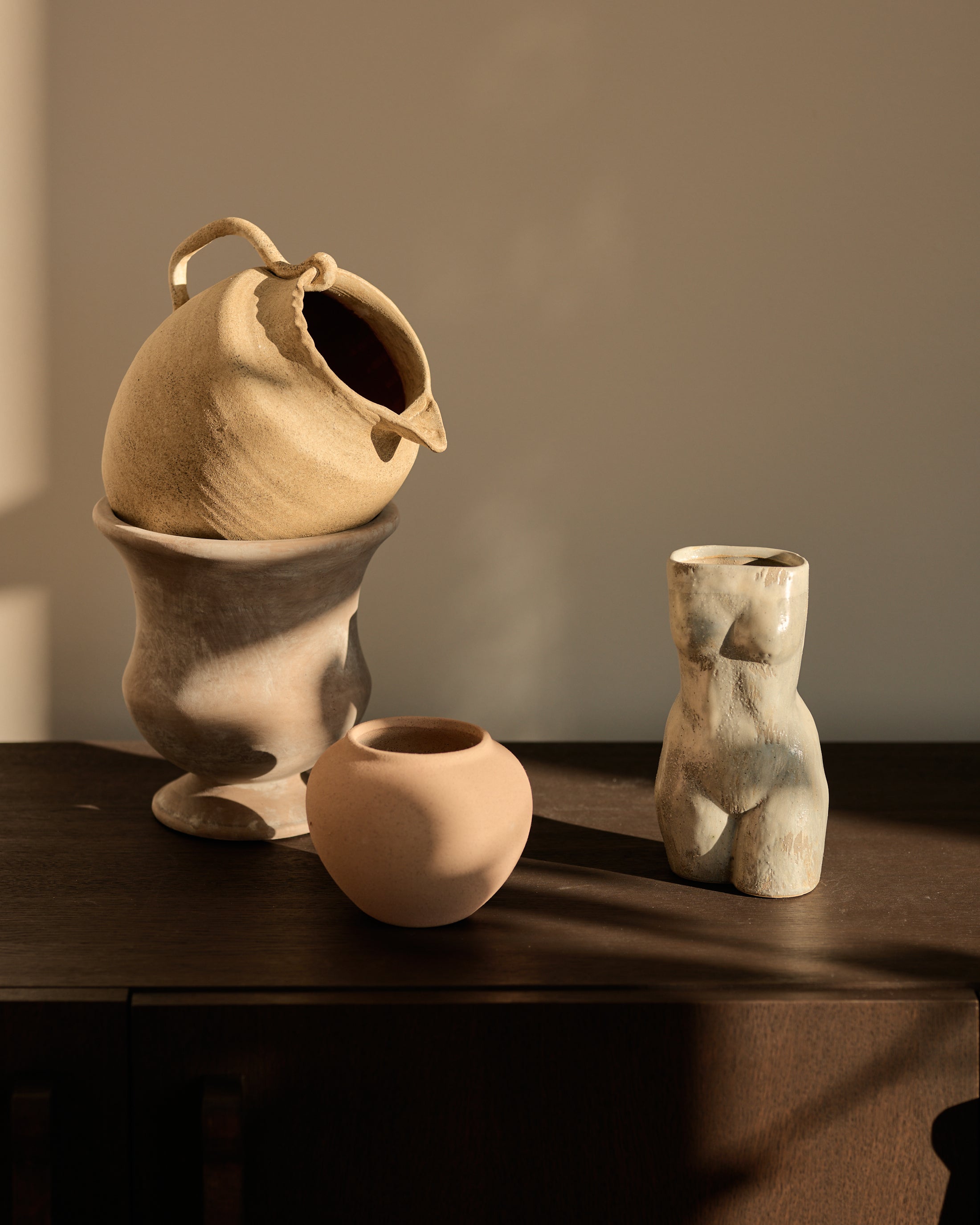 Plant pots, vases and sculptural objects shaped by hand and material. Grounded tones. Textured finishes. Designed to hold greenery, branches or nothing at all.